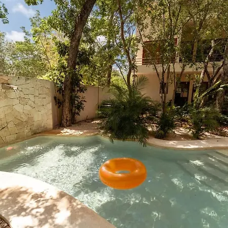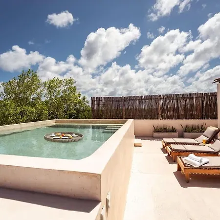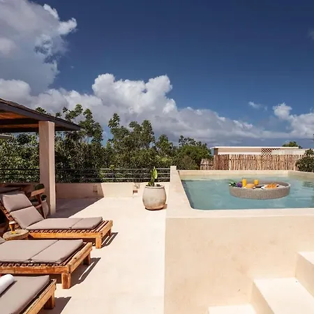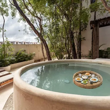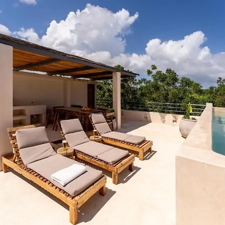 Además de acceso a parajes naturales como el Cenote Escondido, a unos 2 km, la villa Ahal Holistika 9Br Jungle Sanctuary With Private Rooftop & Plunge Pools Tulum ofrece una piscina en la azotea.