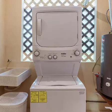 Esta casa de vacaciones incluye un cuarto de baño con lavadora. Hay secador de pelo, artículos de aseo de cortesía y toallas de baño para la comodidad de los huéspedes.